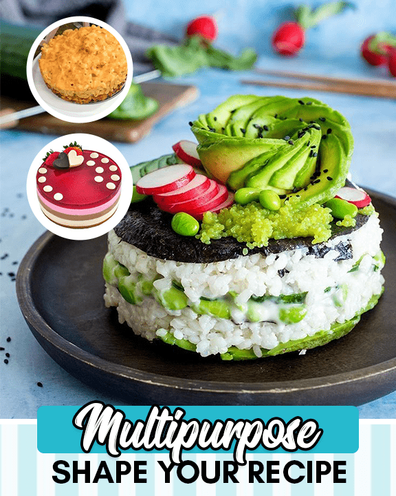 Este juego de moldes multiusos crea una amplia gama de dulces, pasteles, pasteles de verduras , hamburguesas y mucho más.